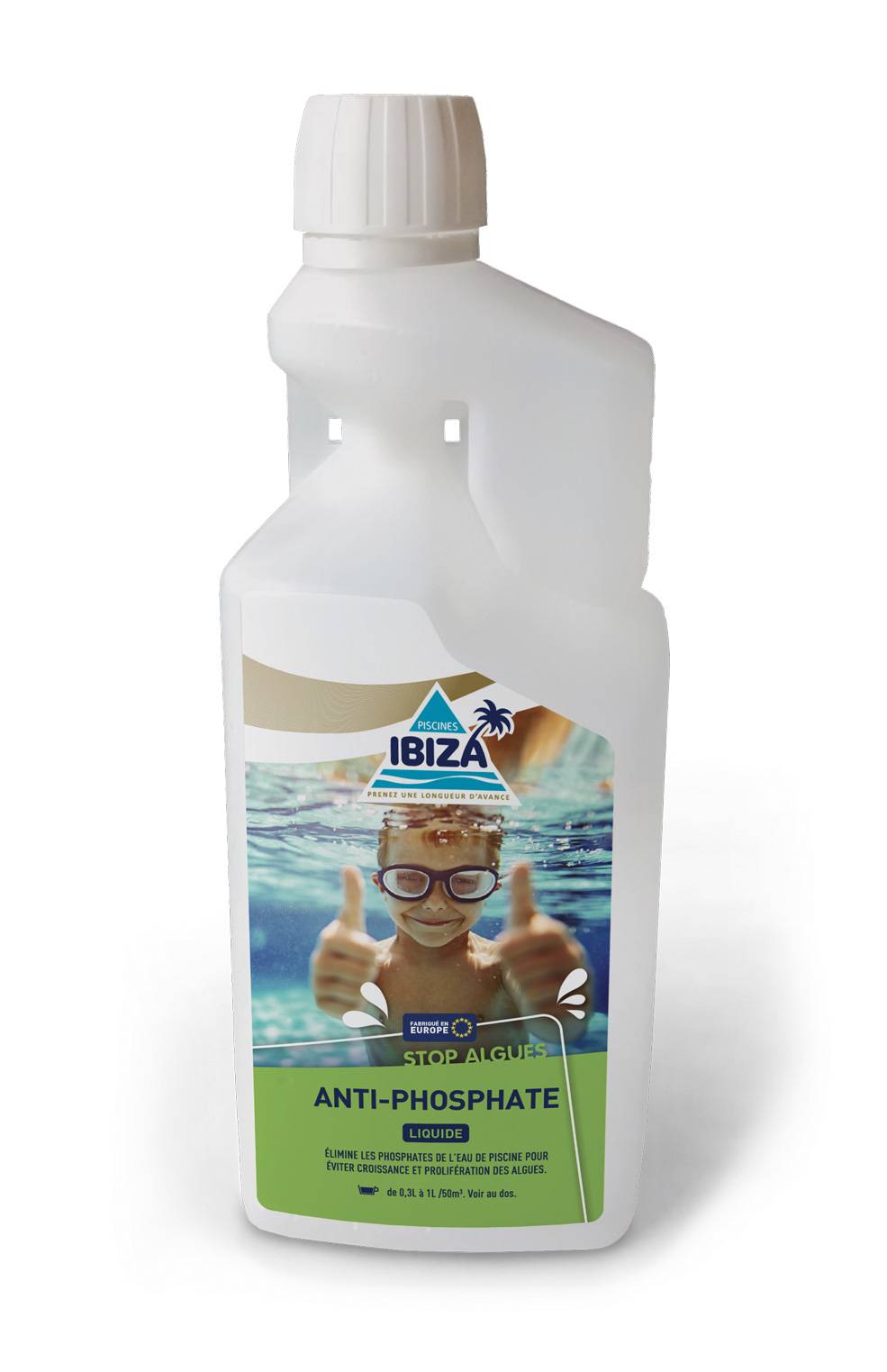 La gamme Ibiza propose à la vente un produit qui élimine les phosphates dans les bassins, car ce sont eux qui sont responsables de la prolifération des algues.