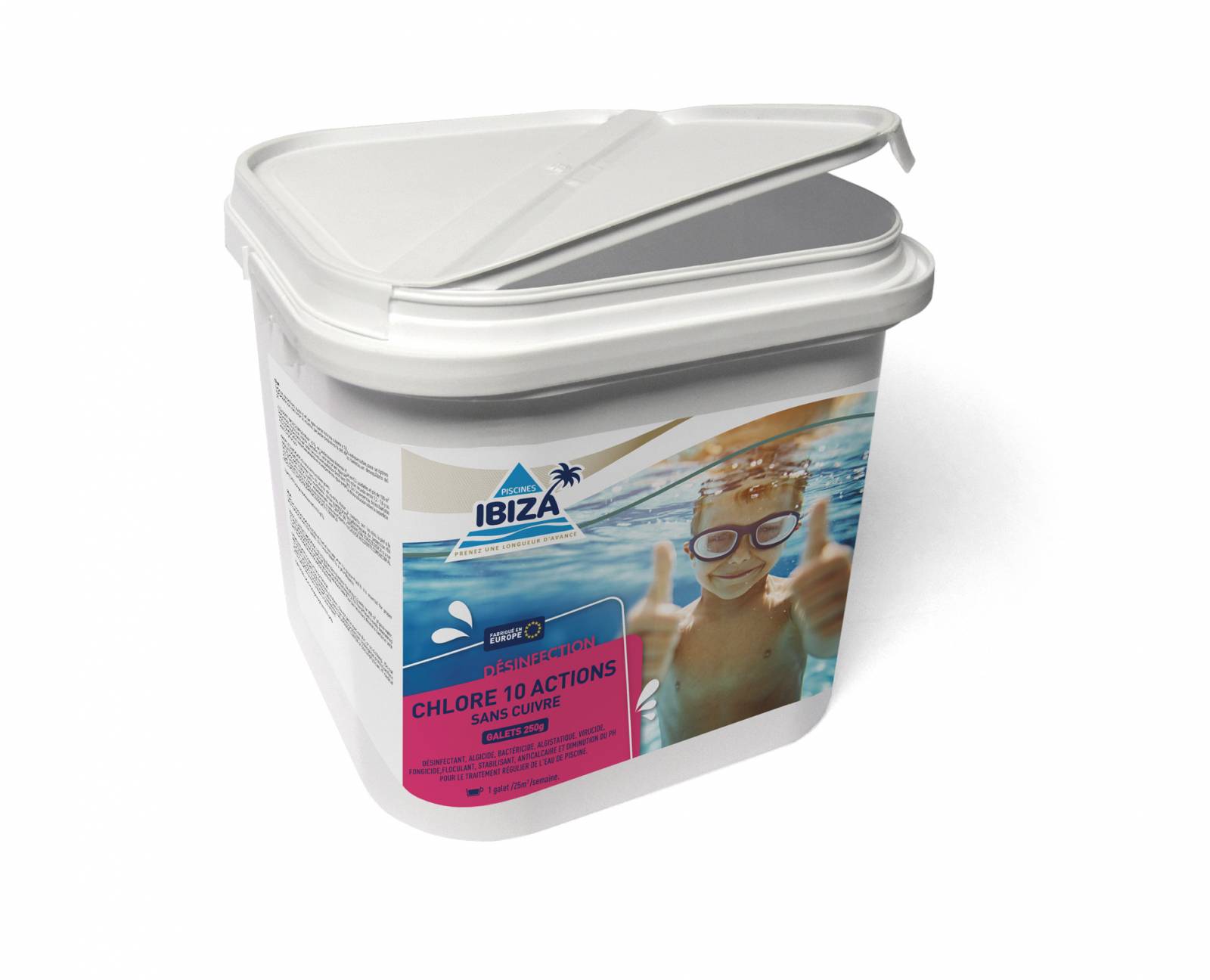 La gamme Ibiza propose à la vente un chlore 10 actions.