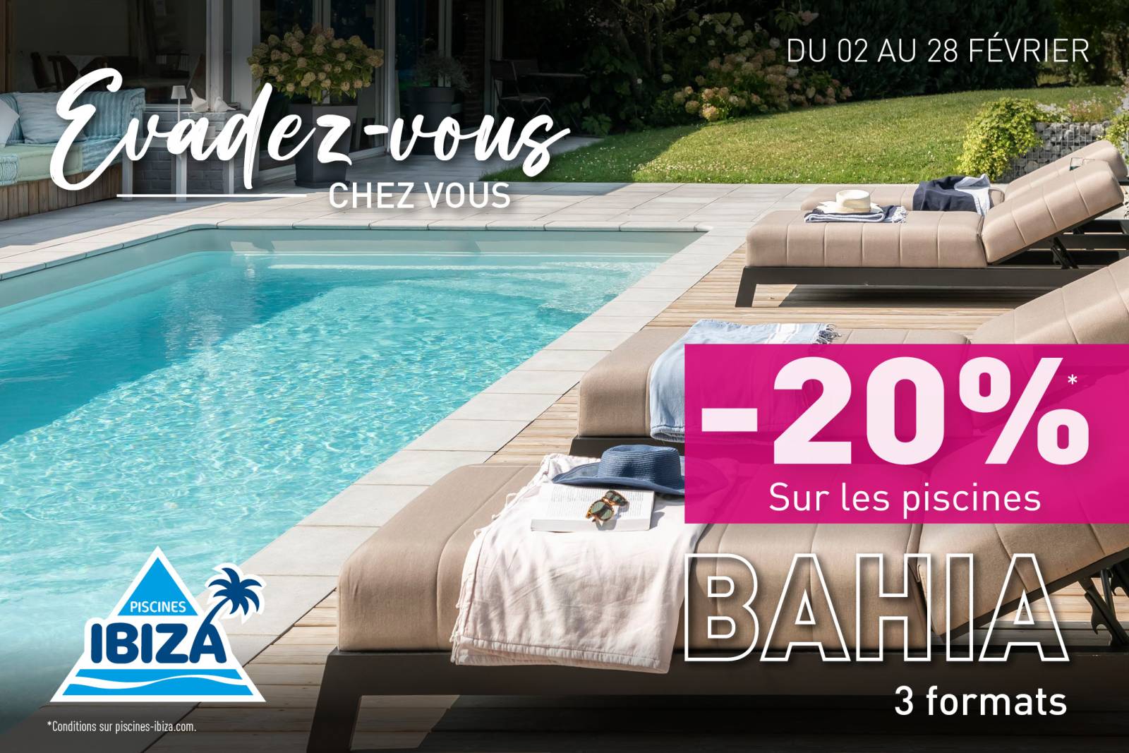 -20% SUR LES PISCINES IBIZA BAHIA SUR LES 3 FORMATS.